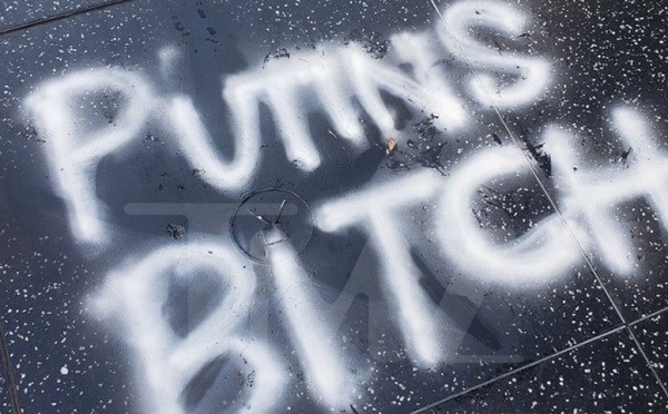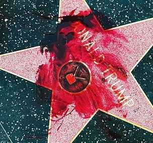 Donald Trump’s infamous Walk of Fame star took a hit once again as vandals resorted to a spray can to make sure the president’s name got covered.