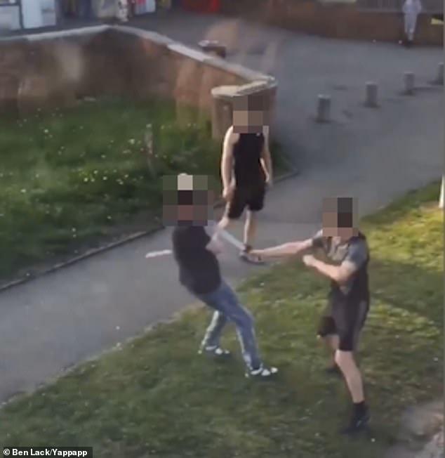 In the video, two boys can be seen gesturing angrily at each other in Leeds, West Yorkshire during a broad daylight brawl.
