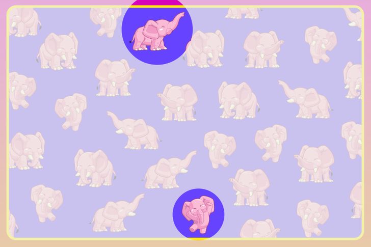 If you’ve found the two elephants without tusks, congratulations! But if you’re still struggling to spot them, don’t worry as the designer of this picture puzzle really made them difficult to spot.