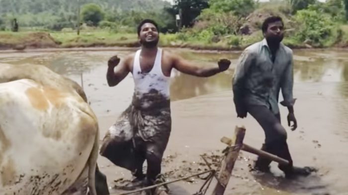 The hilarious 40-second video shows them splashing around the field to the famous hip hop song while moving along with their oxen across the muddy farmland.