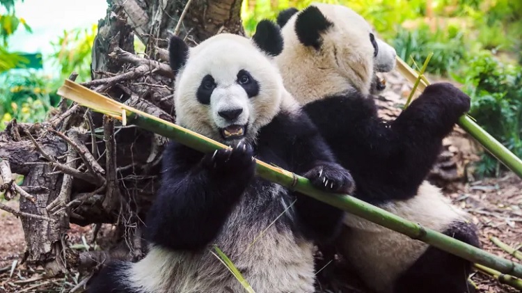 Fresh bamboo comprises almost the entirety of a panda’s diet, said the Calgary Zoo, with the animals normally eating about 40 kilograms (88 pounds) of bamboo a day.