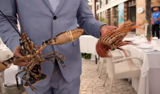 Tyson can then be seen asking for the price of the lobsters.