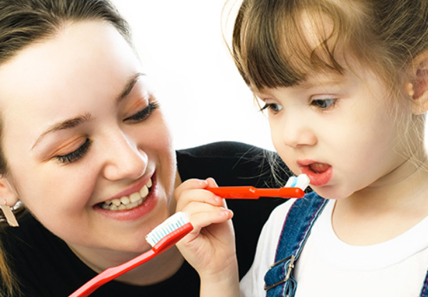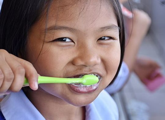 In the UK, children in school may be taught how to brush their teeth satisfactorily.