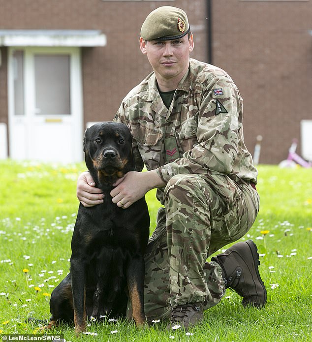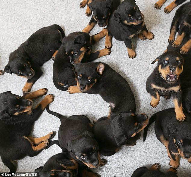 A British soldier’s pet Rottweiler has given birth to a whopping 16 pups as the country’s largest litter ever.