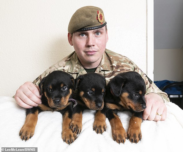 “The scan showed six puppies and I thought ‘great, I’m happy with that’. So we had six in our head the whole time, the scans are usually pretty accurate apparently,” said Marshall, a corporal with the Duke of Lancaster’s Regiment at Weeton Barracks, near Blackpool.