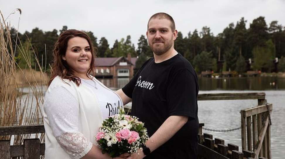 The bride, Rebecca Maxwell, 26 from Northumberland was seen in a white Bride t-shirt with black jeans and white converse while Glen Maxwell, the groom was spotted in black Groom t-shirt with matching jeans and trainers.