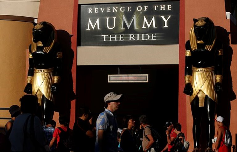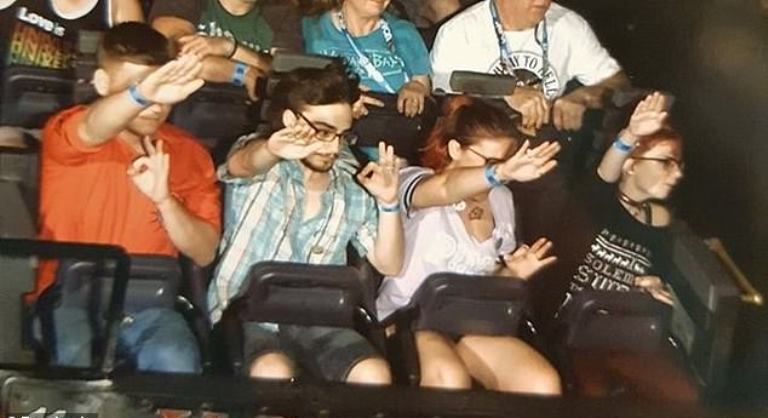They were photographed making the white supremacy signs while riding the ‘Revenge of the Mummy’ ride at the park.