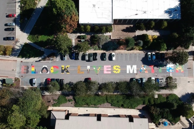 The Black Lives Matter mural that is being targeted was painted on University Heights back on September 30 by student artists.