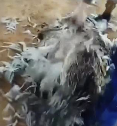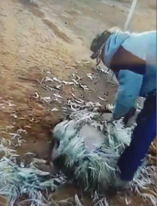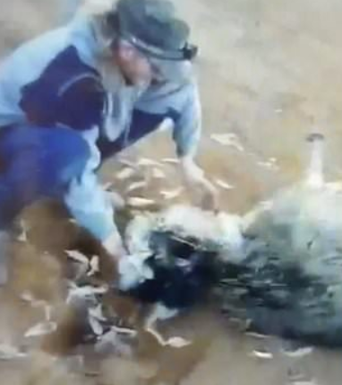 A man wearing a blue jumper can be clearly seen holding the emu’s neck ruthlessly in the video. The suffering bird failed every time it attempted to escape.
