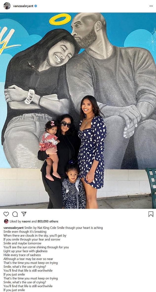 Taking to a Los Angeles mural of the father and daughter, Vanessa and her three daughters have commemorated their lost family members by taking a picture with the beautiful artwork.