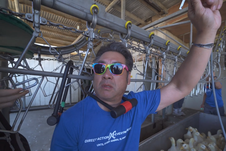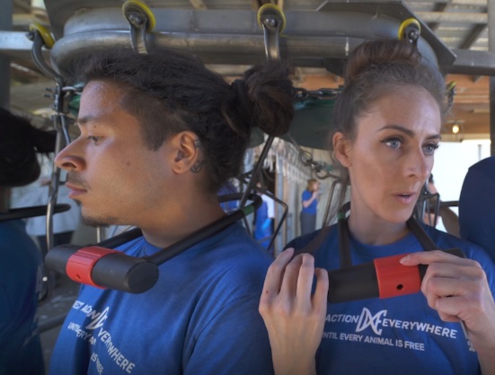 “We need to stop this right now,” one protester of Direct Action Everywhere was heard yelling after the machine began to operate.