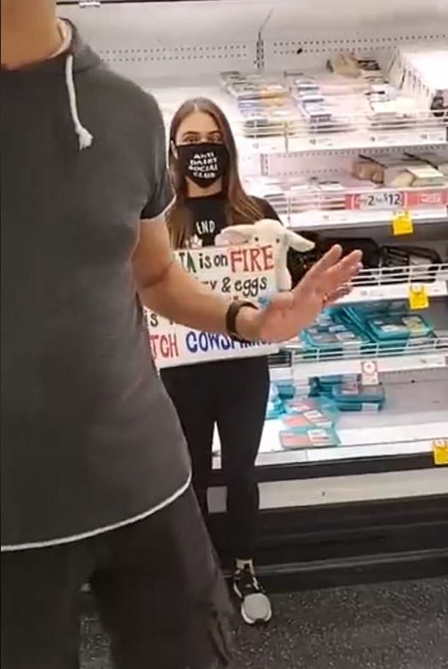 After the sound of sirens from the recording spread throughout the store, angry shoppers and staff confronted the vegan and forced her and her team to leave.