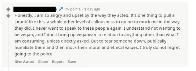 As the 24-year-old woman who took the matter to Reddit explained, she hasn’t eaten meat since she was just a few years old, making the incident that much worse for her.