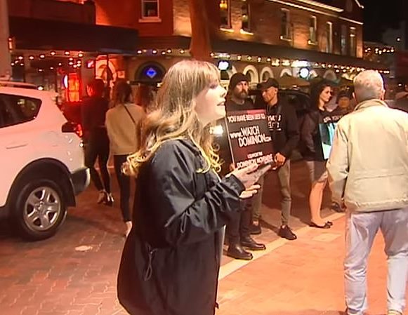 During the latest incident, the protesters were heard preaching restaurant customers while “bullying” them with graphic materials.
