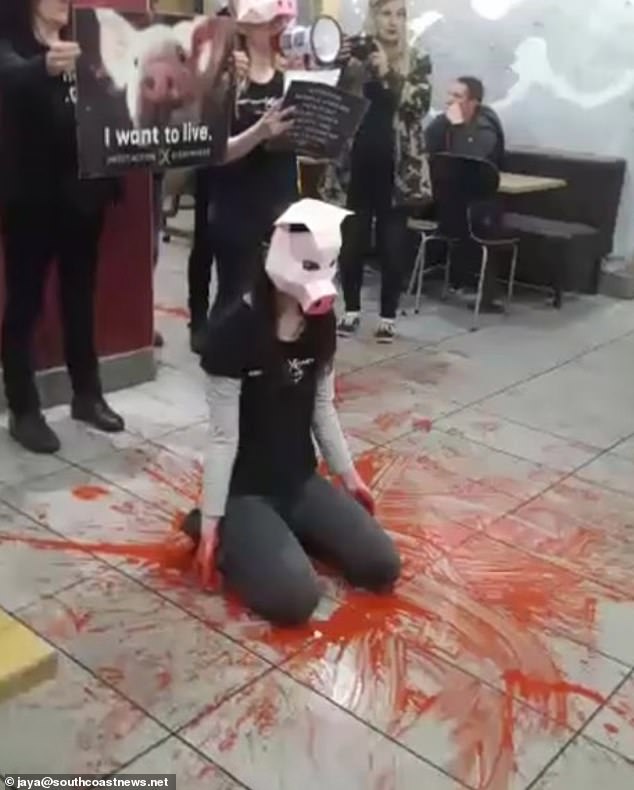 Eco organisation Direct Action Everywhere (DxE) staged the shocking protest who previously staged protests in Waitrose, Jamie Oliver’s restaurant and the Touro steakhouse.