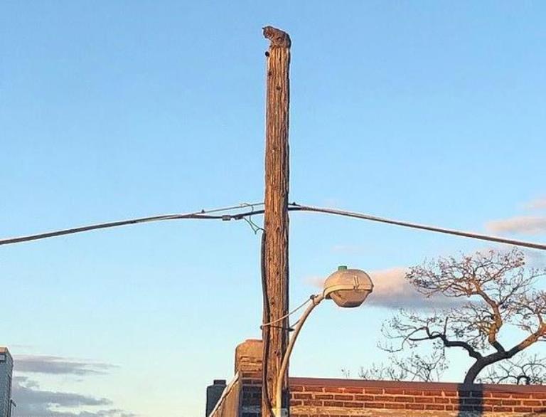 A Verizon employee was working in Port Richmond when he noticed some residents looking at Princess Momma, a cat who had been stuck on a telephone phone for over 12 hours.