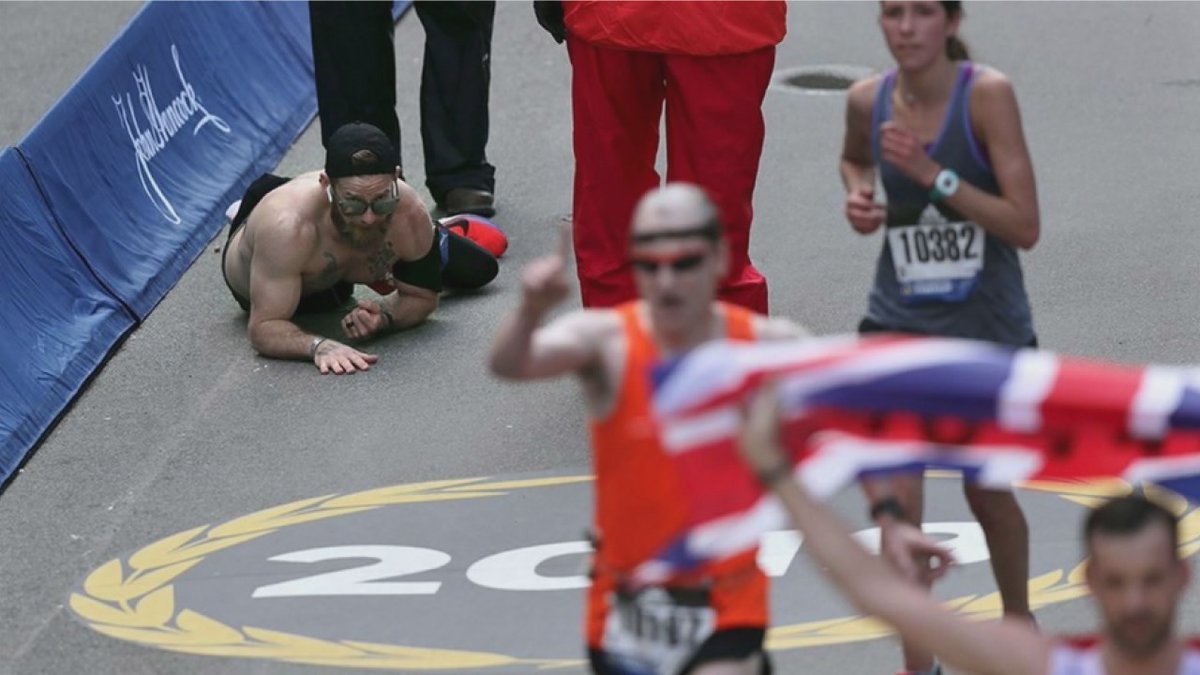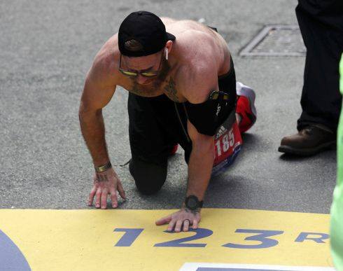 Watch the heartwarming video of former Marine crawls to the finish line of Boston Marathon: