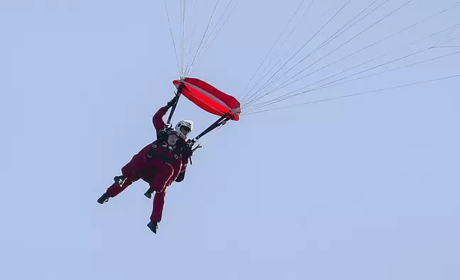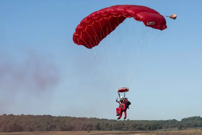 Sandy jumped, accompanying a parachutist from Army’s Red Devil team and passed over the area of Ginkel Health nature reserve before landing.