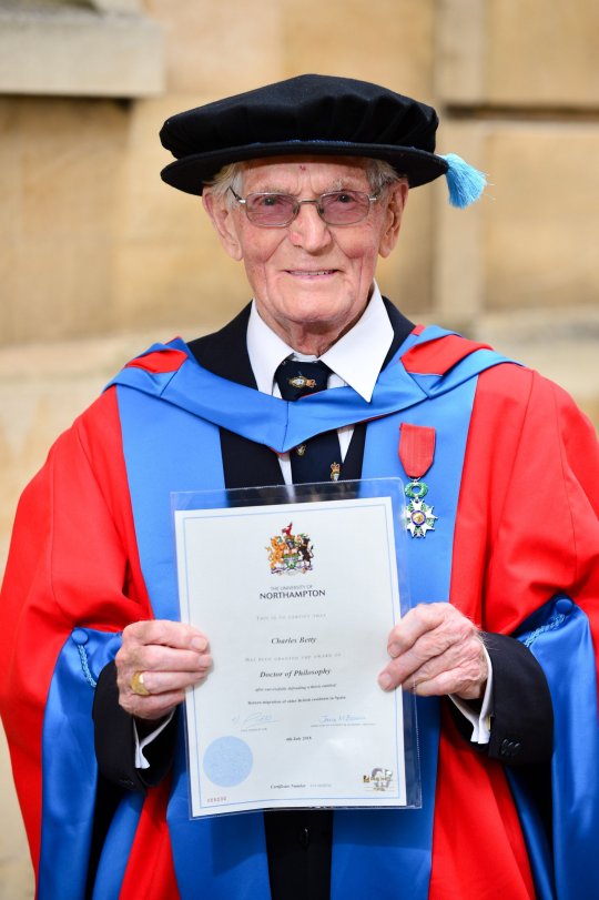 Charles Betty, who left school with no qualifications, completed a 48,000-word thesis to become a Doctor of Philosophy at the University of Northampton.