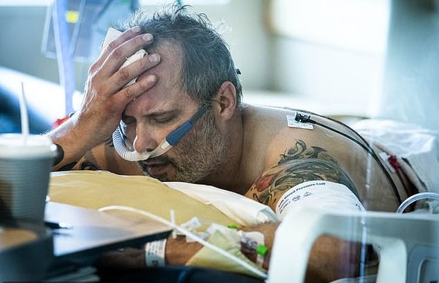 The heartbreaking photo of Michael Wright showed him on his stomach to enhance the capacity of his lung.