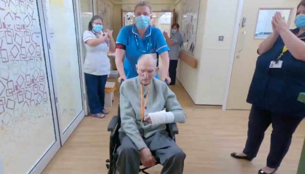 Nurses of Tickhill Road Hospital in Doncaster, England, had a little surprise ready as one of their oldest patients survived the novel coronavirus and prepared to go back home.