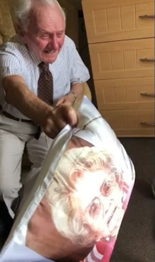 People were left teary after seeing the moment a nurse gave a 94-year-old D-Day veteran a cushion with his late wife’s face on.