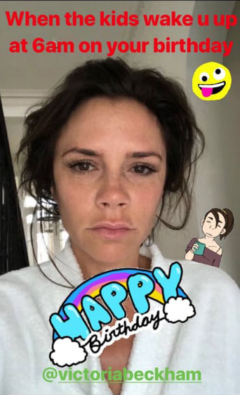 Victoria Beckham shared her no make-up look on her 45th birthday as her kids woke her up at 6 am.