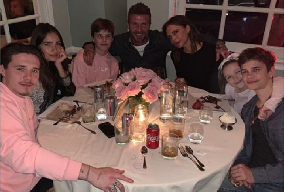 Victoria shared a photo of herself celebrating her birthday with family including Brooklyn’s girlfriend Hanna Cross.