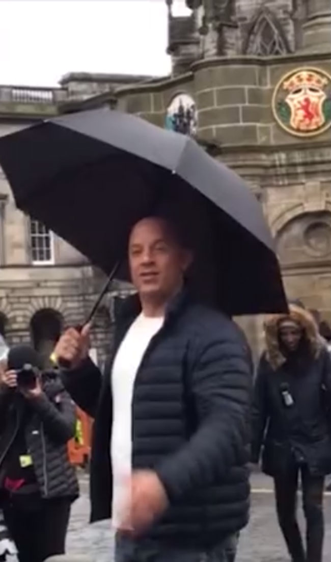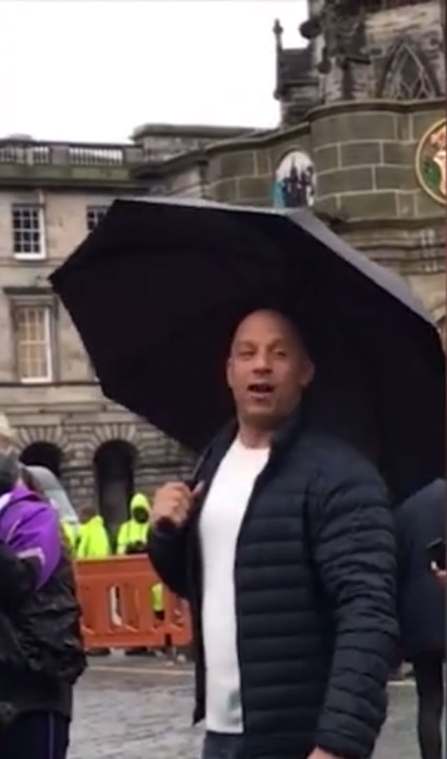 Hollywood star Vin Diesel was spotted singing Flower Of Scotland in an Edinburgh street.