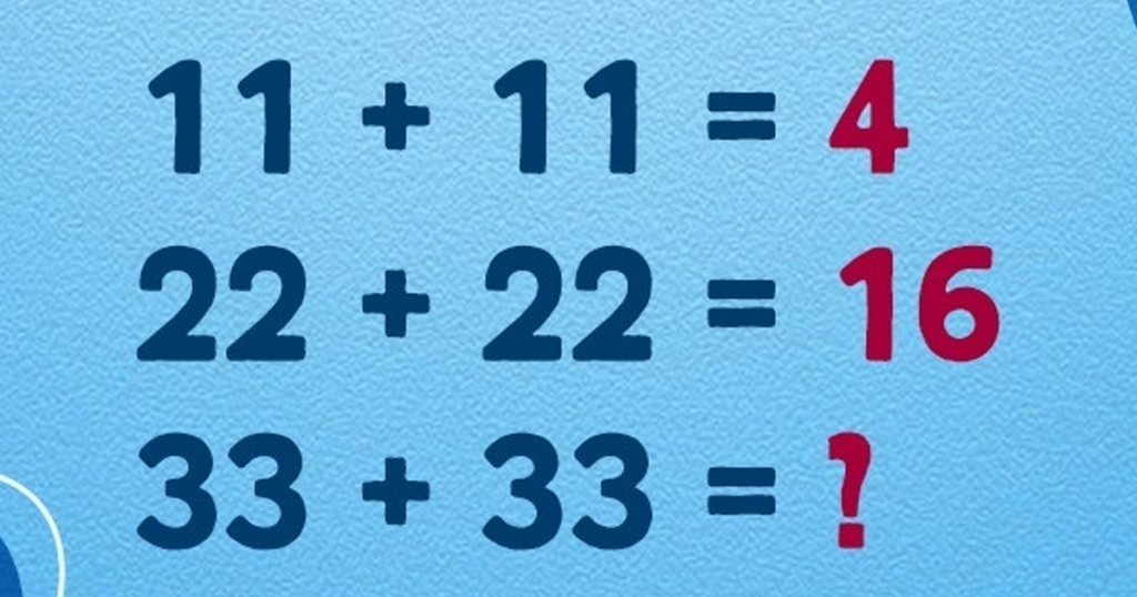 In this one, how can 11 + 11 = 4 and how can 22 + 22 = 16? When thinking about it in logical terms, it does not make sense. This causes you to think outside of the box. If you are still stuck though, we will provide hints as always.