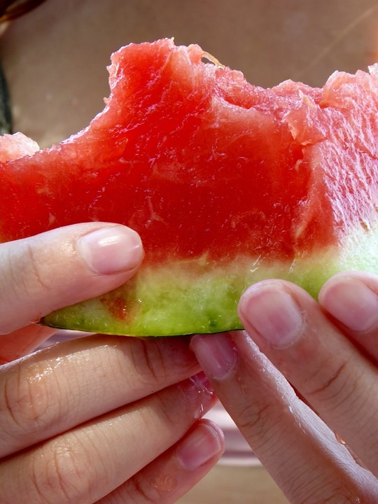 The answer is WATERMELON! You eat the red part of the fruit but stop when you get to the green portion.