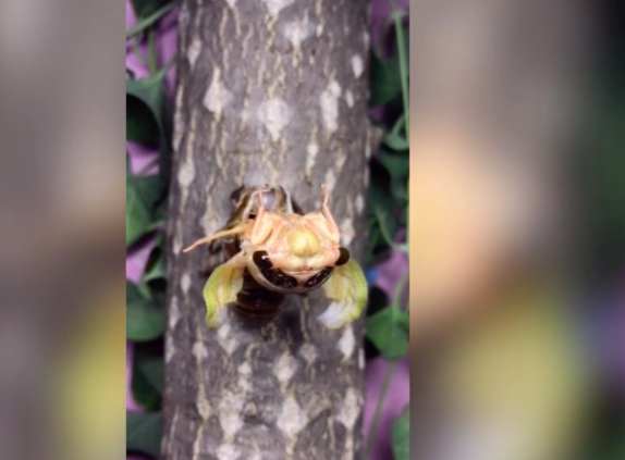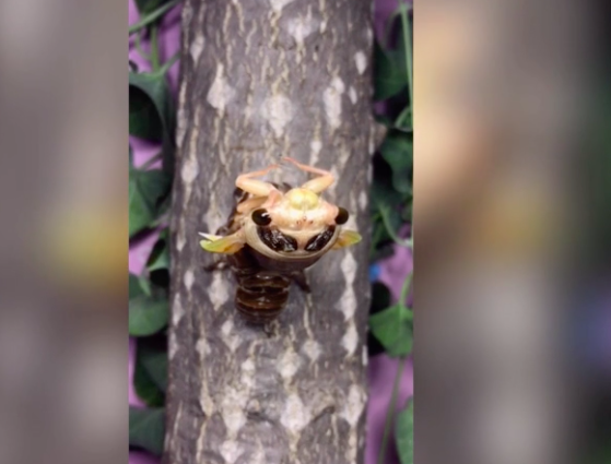 This is the video that was captured in the Xingtai city that is a province of Hebei where you can see how Cicada is stretching its body from the shell.