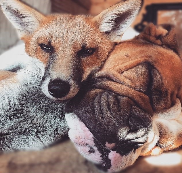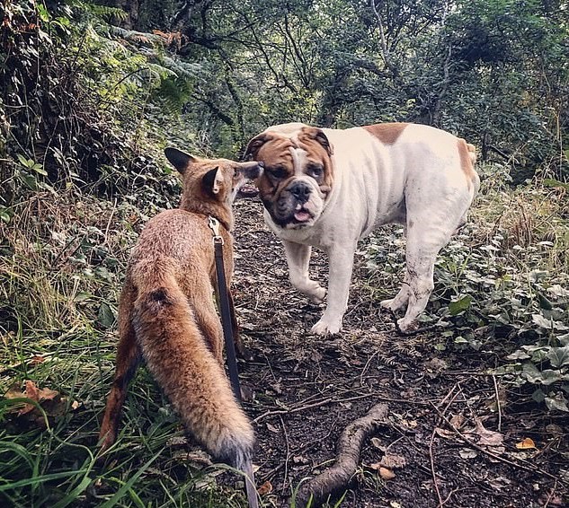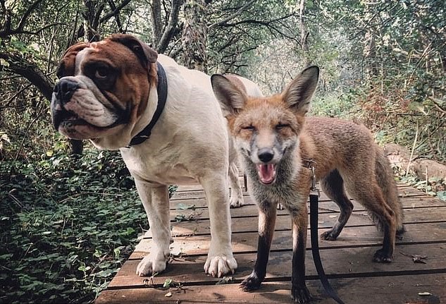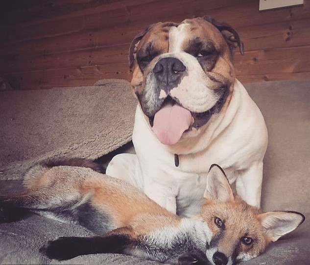 The popular Disney film ‘The Fox and the Hound’ has been brought to life by a vixen and a bulldog.
