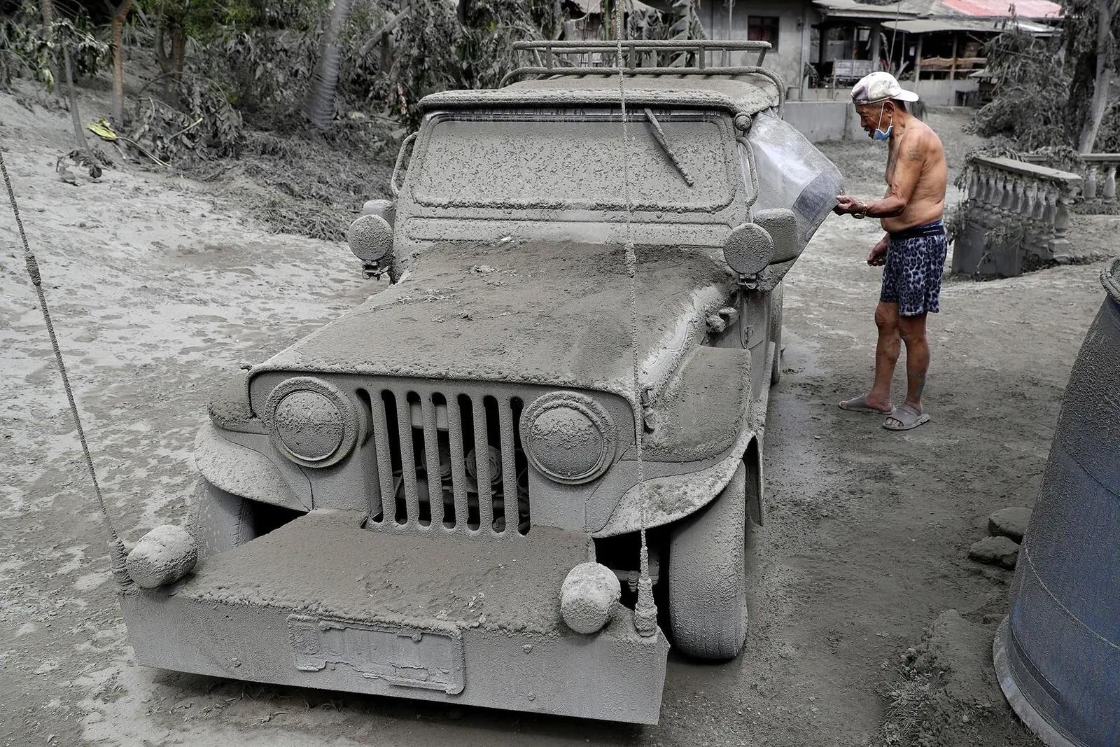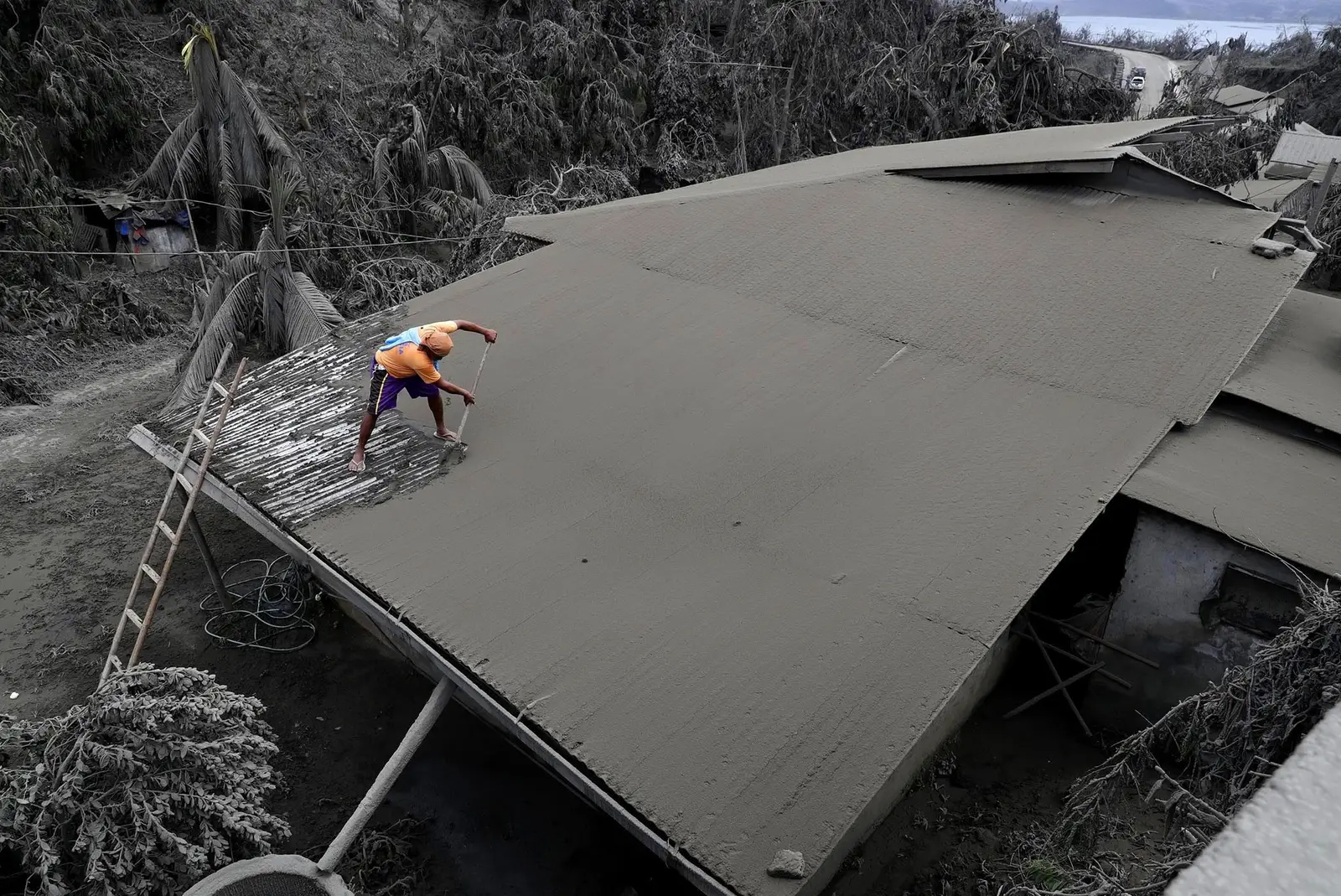 In the Philippines’ Batangas province, the Taal volcano spread lava and covered the surrounding area with a layer of gray ash.