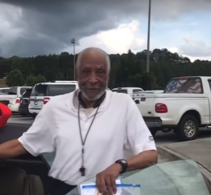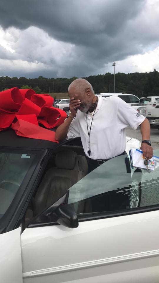 When they presented him the gift in the parking lot, Buster was left in tears.