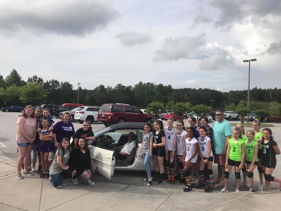 The volleyball players along with their parents decided to surprise Buster with a thoughtful gift.