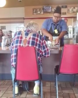 Fortunately for 78-year-old Adrian from Texas, young Evoni Williams took notice of him as soon as he entered the Texas Waffle House where the teen serves food.