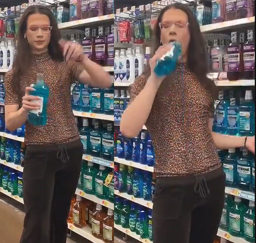 A Walmart shopper sloshed the blue liquid around in her mouth before spitting it right back in the bottle.