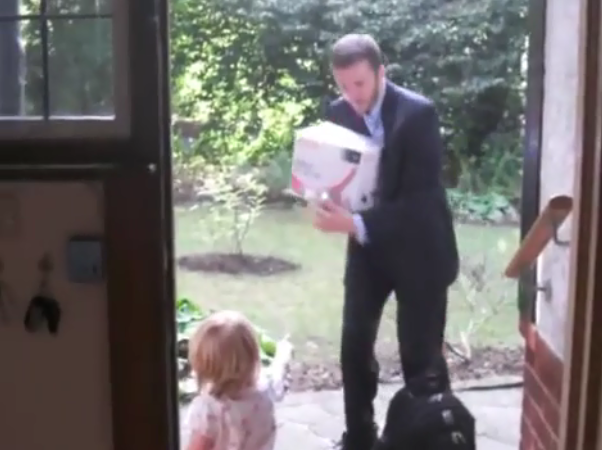 The video begins with Hannah’s mother teasing her by asking her if daddy has arrived revealing shortly that he has indeed arrived. Little Hannah instantly moves to their main door and is waiting for the dad to enter. Her excitement subsides for a while when her dad doesn’t enter the door.