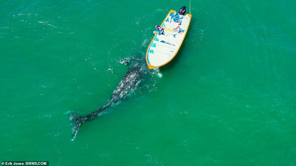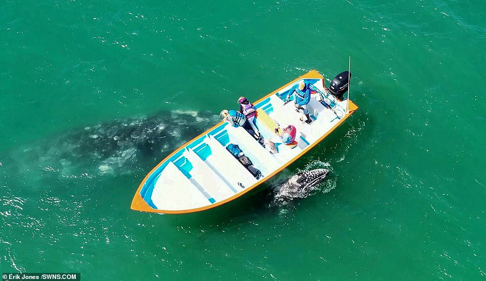 Explaining the generic whale behaviors, 39-year-old Jones said: “Most of the time, the mothers push their young calves up to the boat to get touched by humans.”