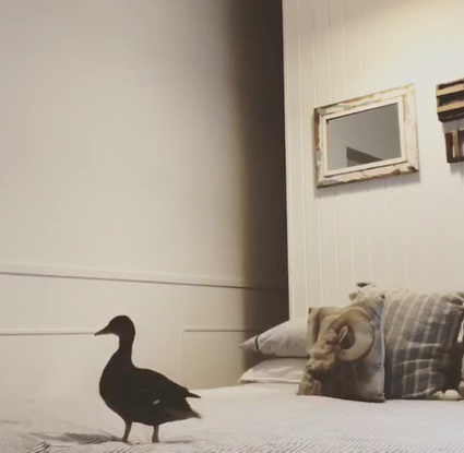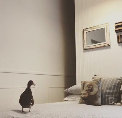 It is found that the pet is clever and it starts to play with the blanket. When compared with dogs, the ducks are smarter animals.