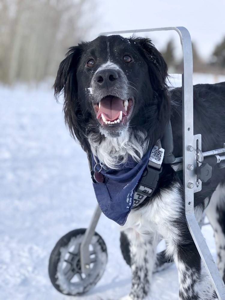 Thanks to the wheelchair which allows him to stay upright despite wobbly legs, Moby can enjoy activities that any normal dog would engage in such as walks in the park and meeting other dogs.