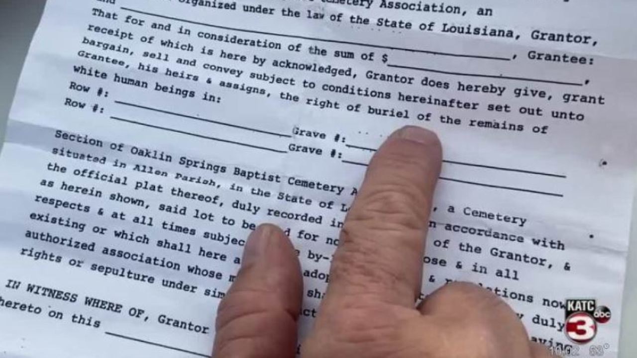 Apologizing for the inconvenience, Oaklin Springs Cemetery Association’s president, Creig Vizena, explained how one of their contracts dictated that only “white human beings” could be buried at the cemetery.