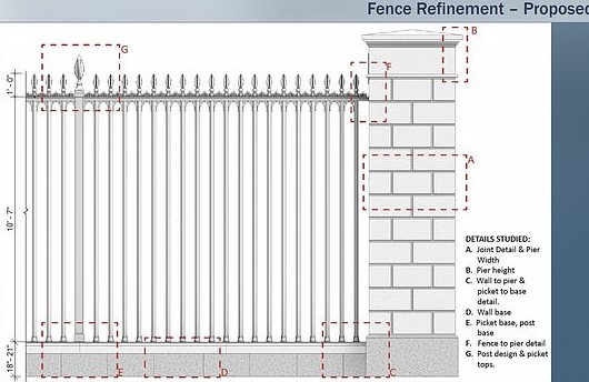 To make that possible, the fence with feature an 18-inch aboveground stone foundation as well as a 10’ 7” metal barrier with spikes on top of it.