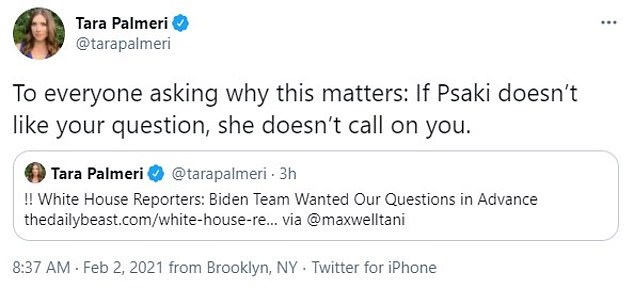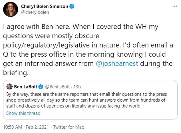 “Part of meeting that objective means regularly engaging with the reporters who will be in the briefing room to understand how the White House can be most helpful in getting them the information they need,” the White House spokesperson said in a statement shared by DailyMail.com.