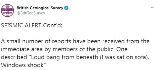 A Twitter of a local resident expressed that they heard a loud bang from under the ground and the windows rattled.