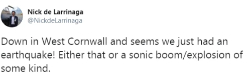 A resident, Steve Cowe said to the Cornwall Live that they were sitting in the living room watching TV and panicked of something to have crashed on house or somewhere near the house to express the violent shake they felt.