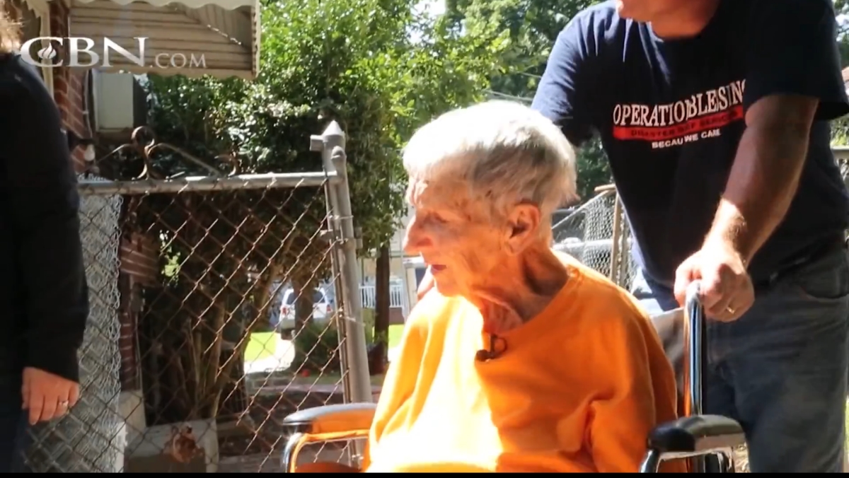 As they heard her story, the organization immediately sprang to action. Agnes and the team agreed to have her backyard cleared, along with tearing down her broken shed and trailer that was also on her property. But then Agnes went outside to discover other volunteers had been showing up — people Agnes never asked for or expected to see. It seemed the folks at Operation Blessing had secretly called upon some extra assistance.