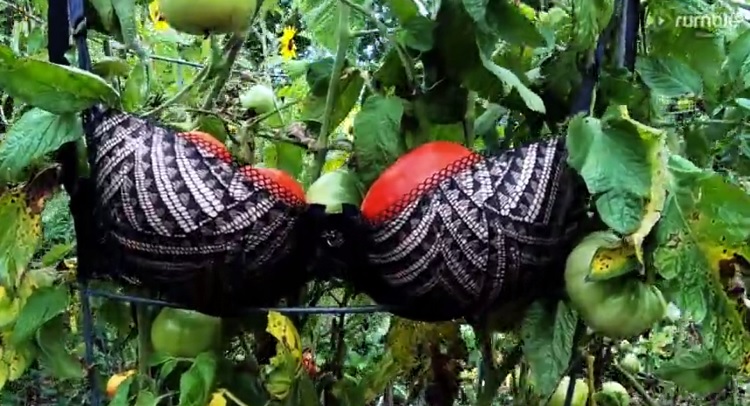 Kristy’s gardening hack involved using her bras to hold up the huge tomatoes to prevent them from dropping to the ground. It was so clever yet so hilarious that Dave couldn’t help but start recording his strange find.