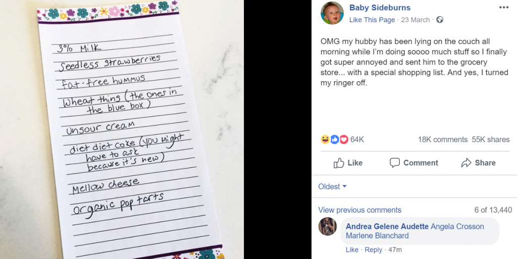 The post went viral and gained more than 64,000 reactions, 55,000 shares and 18,000 comments.